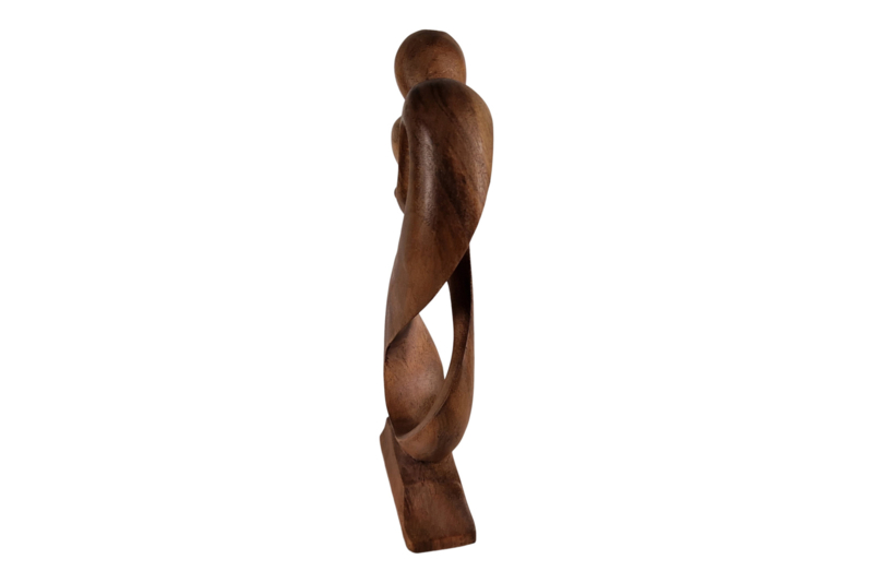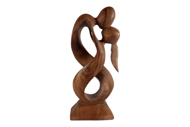 Dit moderne houten beeldje is niet alleen een mooi beeldje, maar ook nog eens duurzaam geproduceerd. Daardoor is het niet alleen een blikvanger voor uw woonkamer, maar ook een mooi cadeau voor een huwelijksfeest of herinnering aan dierbaren. Een cadeau met een betekenis.