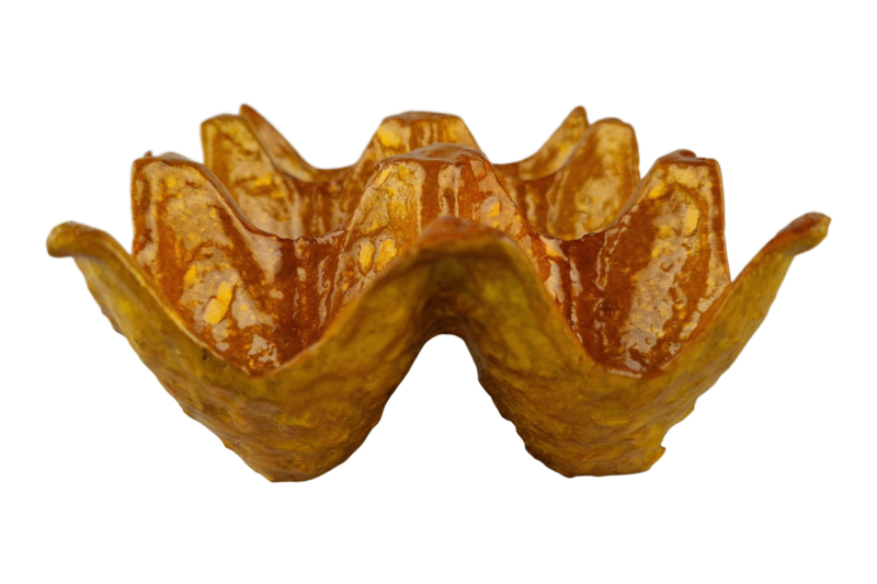 Deze unieke eierhouder is de perfecte combinatie van praktische functionaliteit en feestelijke paasdecoratie. Met zijn warme pompoenkleur brengt hij sfeer aan uw paastafel, terwijl hij ruimte biedt aan 6 eieren.